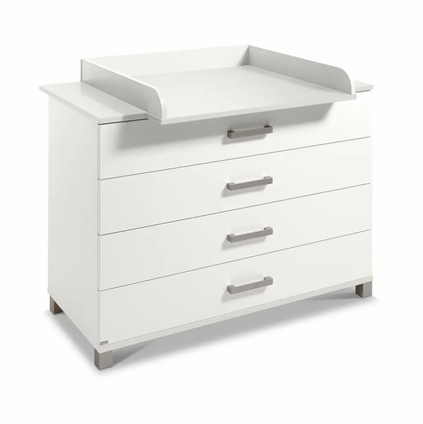 - Wickelkommode inkl. Wickelaufsatz, 4 Schubkästen mit je einer Fachunterteilung, oberer Schubkasten mit Vollauszug, belastbar bis max. 50 kg