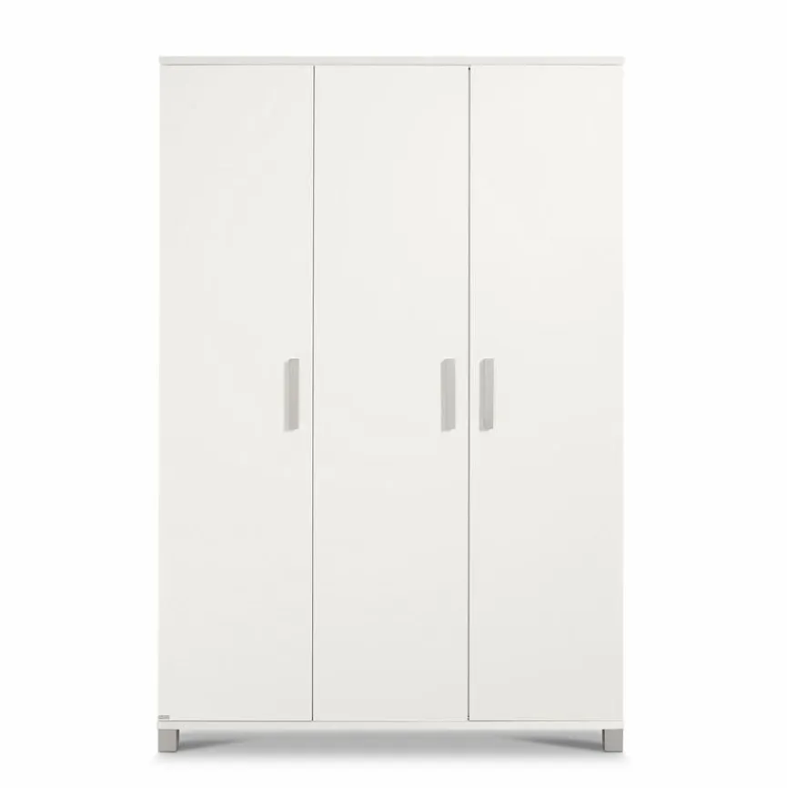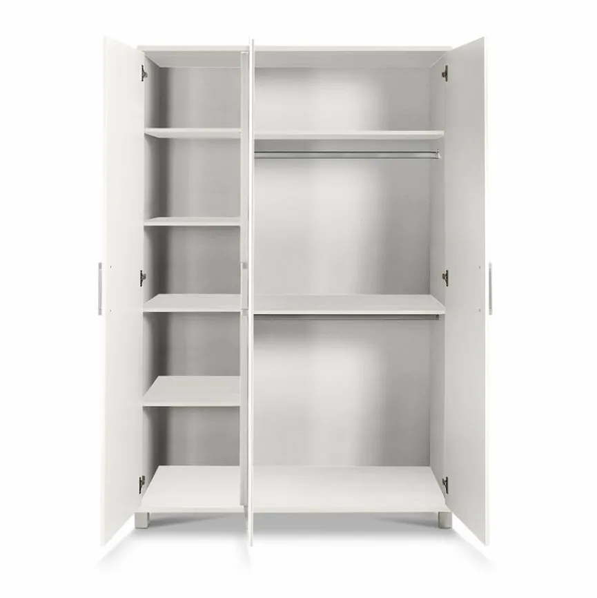 - Kleiderschrank mit 3 Türen, 4 schmalen und 2 breiten Einlegeböden und 2 Kleiderstangen, jeder Einlegeboden bis max. 25 kg und jede Kleiderstange bis max. 30 kg belastbar
