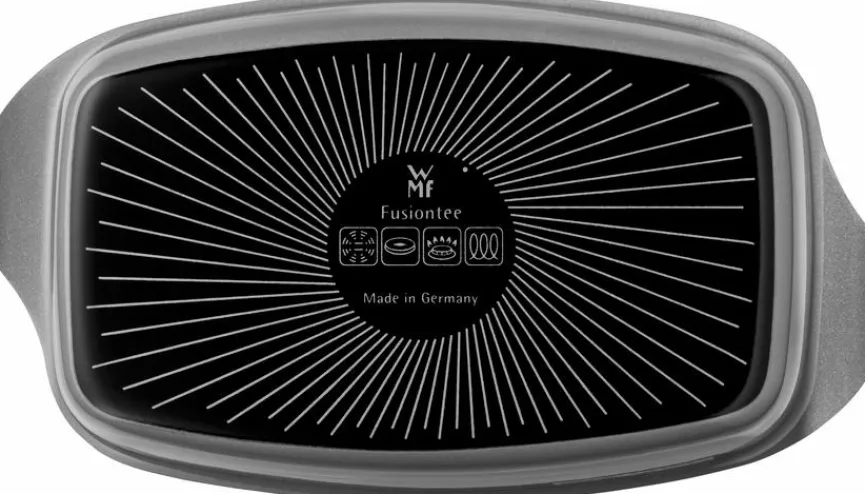 Der hochwertige, rechteckig geformte Bräter Fusiontec Mineral Ø 39 cm von WMF eignet sich aufgrund seines Volumens für die Zubereitung von großen Familienportionen und erfreut mit praktischen Gebrauchseigenschaften. Dazu zählt unter anderem ein breiter Schüttrand, der Ihnen ein tropffreies Abgießen von Flüssigkeiten ermöglicht. Den zum Bräter Fusiontec Mineral Ø 39 cm gehörigen Deckel aus Borosilikatglas können Sie praktischerweise multifunktional einsetzen, zum Beispiel als Auflauf- oder Backform.