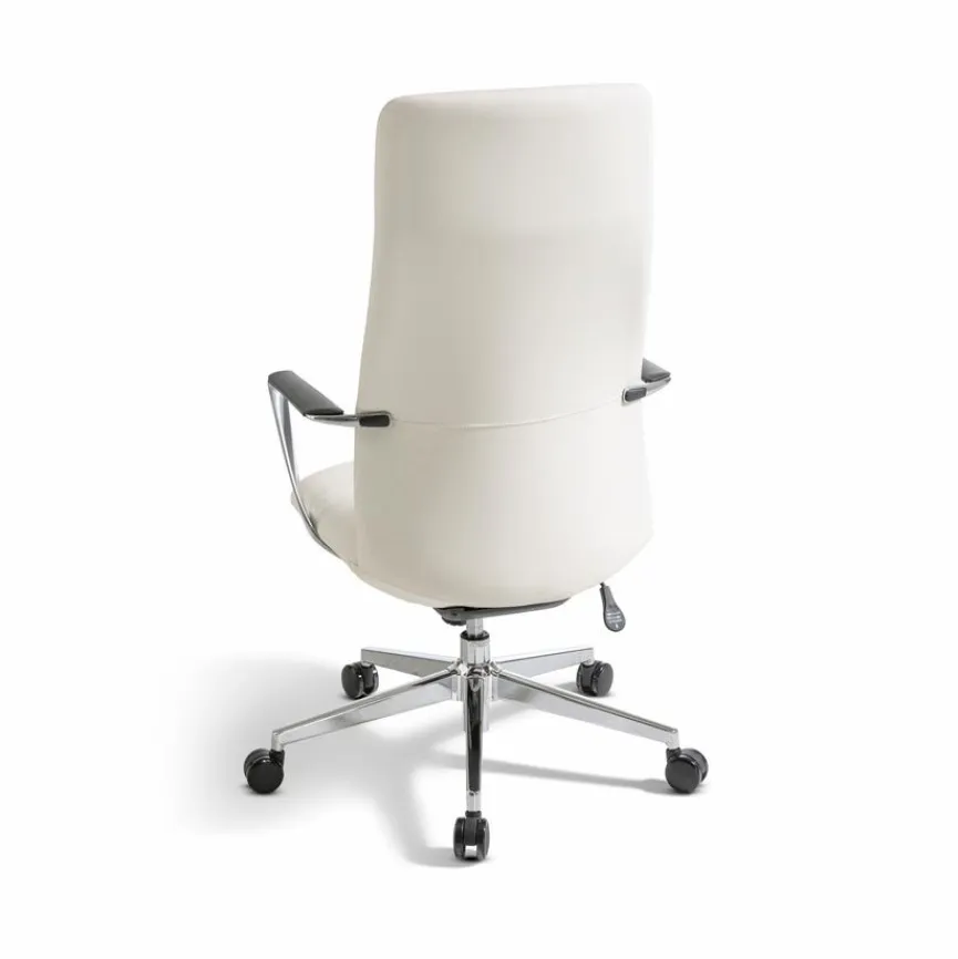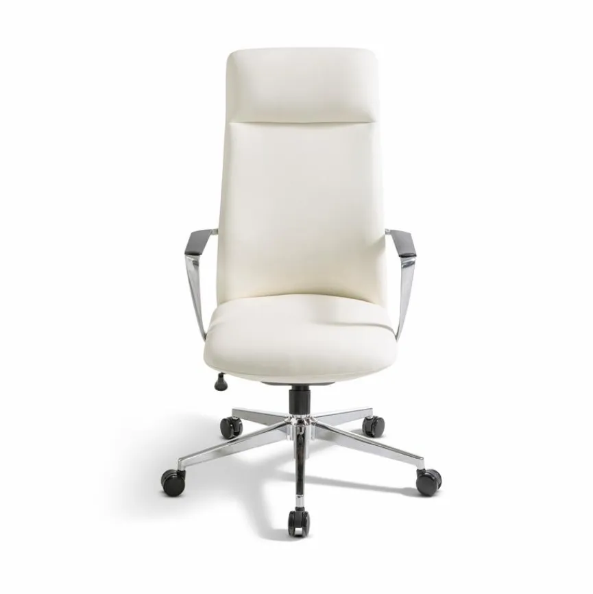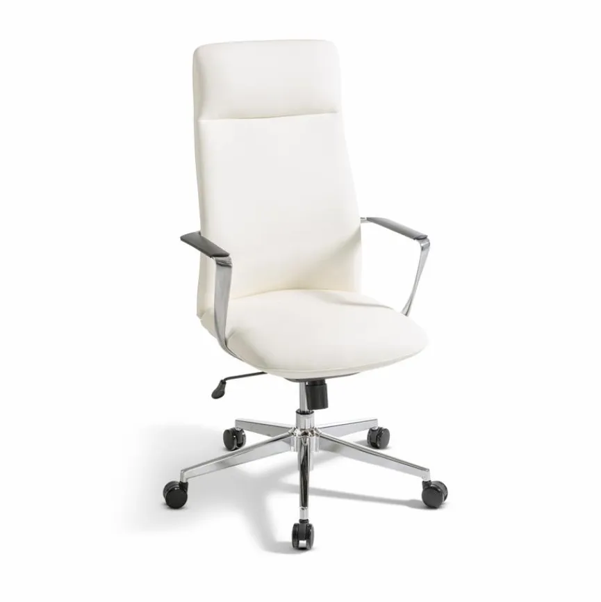 - Bezug aus Lederoptik in weiß, Gestell aus Aluminium in silber