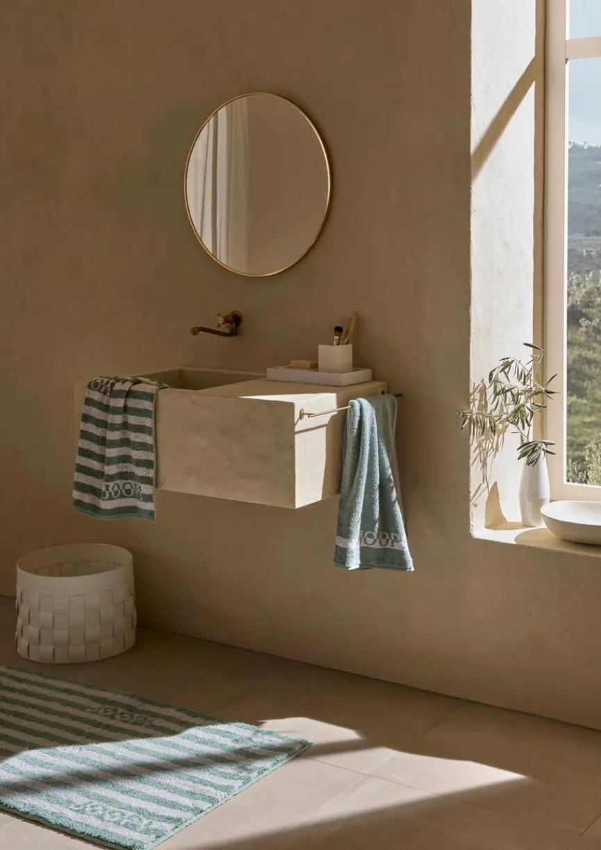 Kuschelweich und chic umfängt das Duschtuch Split Stripes 80x150cm von JOOP! nach dem Bad den Besitzer. Sein gestreiftes Muster verläuft horizontal und macht die Optik des soften Textils zum Spiel starker Kontraste. Der wiederholt eingewebte Name des deutschen Top-Designers wird dabei stets durchbrochen und mittig farblich gespiegelt. Ein aparter Design-Kniff, der das Duschtuch Split Stripes 80x150cm zum Stil-Statement daheim, im SPA oder am Pool macht.