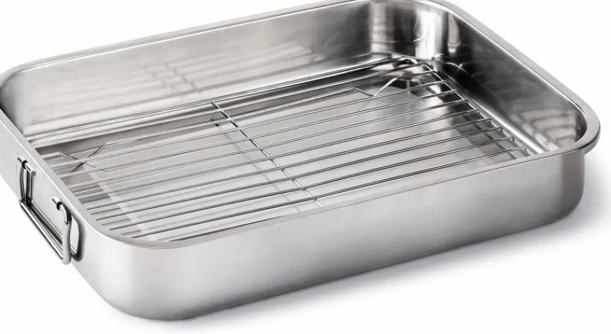 Die Bratpfanne aus Edelstahl eignet sich hervorragend für die Zubereitung von Familienmahlzeiten, unabhängig davon, ob Sie Ihren Napoleon-Grill oder den Backofen nutzen. Der mitgelieferte Wenderost aus Edelstahl kann umgedreht werden und bietet eine erhöhte Plattform für Ihren Braten zum Auffangen von Bratenfett, mit denen Sie köstliche Saucen zubereiten können. Die Edelstahl-Bratpfanne ist groß und tief und eignet sich daher zum Auffangen von Bratenfett, zum Rösten von Gemüse und natürlich auch zum Zubereiten großer Braten. Dank der stabilen, einklappbaren Griffe lassen sich große Mahlzeiten einfach zwischen Grill, Herd und Spülmaschine bewegen. Unser praktisches, multifunktionales und pflegeleichtes Zubehör bietet Ihnen alles Wesentliche für die Zubereitung köstlicher Grillgerichte und darüber hinaus eine Vielzahl kreativer Ergänzungen, um Ihren kulinarischen Horizont zu erweitern.