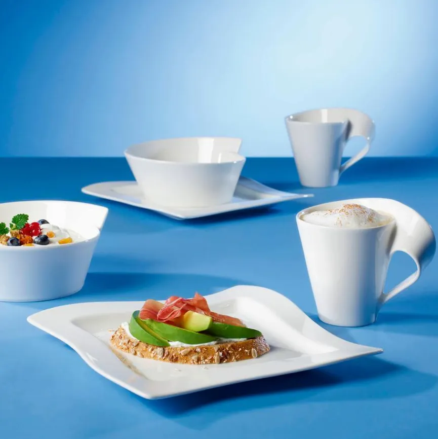 Der Frühstücksteller New Wave aus dem Hause Villeroy & Boch zaubert mit seiner asymmetrischen Form eine moderne Atmosphäre auf die Tafel. Dieser Teller macht wirklich Lust auf Essen. Zudem lässt sich der Frühstücksteller New Wave von Villeroy & Boch auch gut mit anderem Geschirr auf dem Tisch kombinieren.