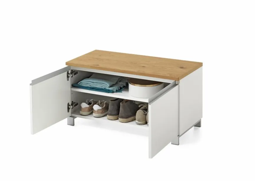 Die Garderobenbank Salea der Marke Voss Möbel überzeugt mit ihrem großen Stauraum, in dem Ihre persönlichen Gegenstände genug Platz haben werden. Außerdem ist die Garderobenbank Salea auch schön anzusehen, denn mit ihrem angenehmen Farbspiel und der eleganten Ausstrahlung ist sie eine ausgesprochen angenehme Erscheinung. Die Umkleidebank kann auch mit ihrer hervorragenden Qualität punkten, die sie unter anderem der sorgfältigen Materialwahl verdankt.