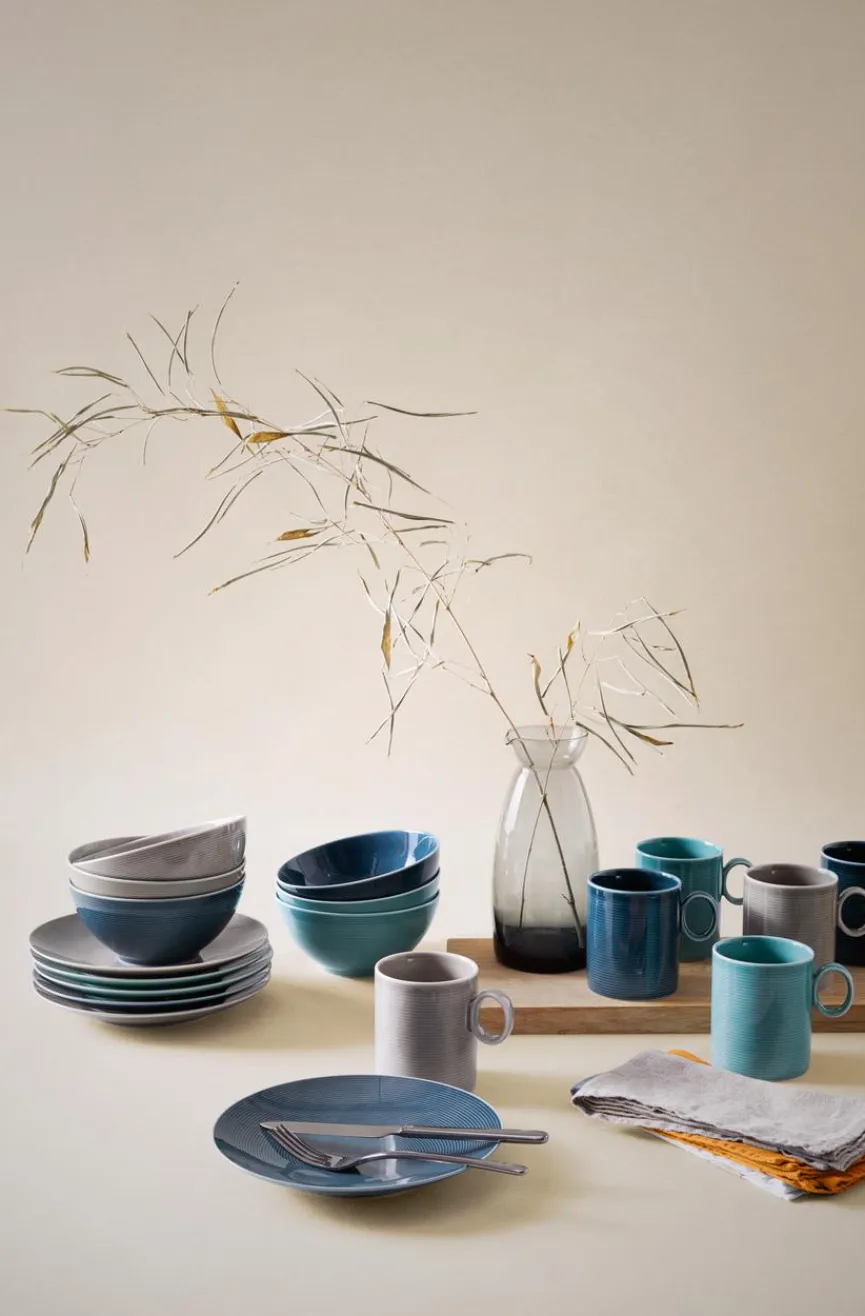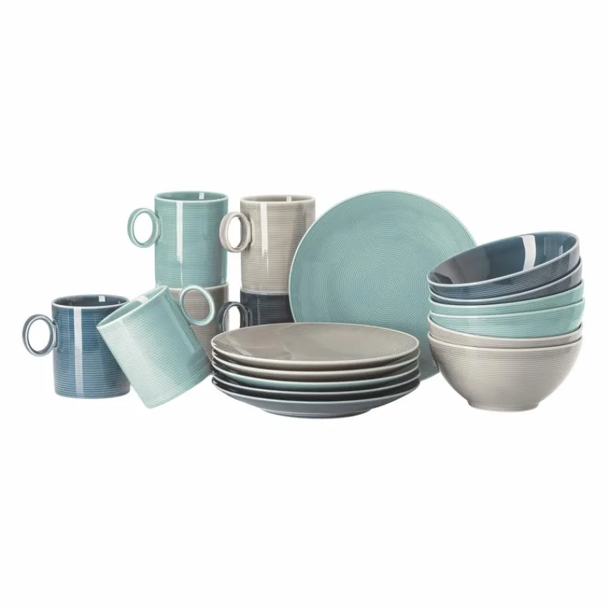 - Je 6 Frühstücksteller Ø 22 cm, Müslischalen Ø 15 cm, Kaffeebecher 380 ml