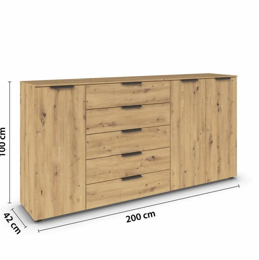 In der Kommode Flipp bringen Sie Gegenstände unterschiedlichster Art sinnvoll sortiert unter. Auf der Oberfläche lassen sich zudem etwa verschiedene Dekorationsartikel ansprechend in Szene setzen. Darüber hinaus fügt sich die Kommode Flipp mit ihrer klaren Formgebung nahtlos in unterschiedlichste Wohnkonzepte ein und schafft dank der stilvollen Holzoptik gleichzeitig ein gemütliches Ambiente.