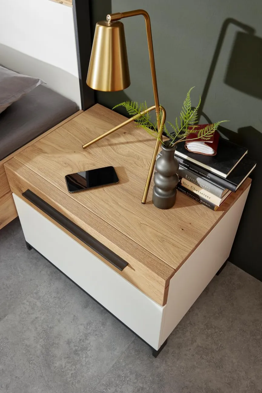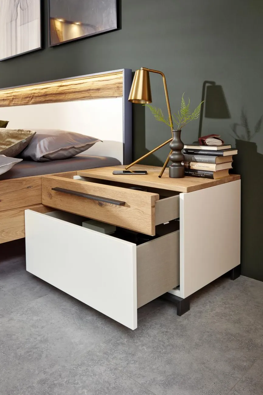 Die Nachtkonsole Joline aus dem Hause Musterring punktet mit ihrem modernen Design, das optische Akzente setzt. Zudem bietet dieser Nachttisch mit zwei Schubkästen praktischen Stauraum. So haben Sie dank der Nachtkonsole Joline der Marke Musterring stets alle notwendigen Gegenstände schnell zur Hand.