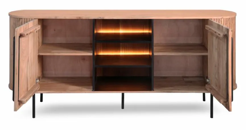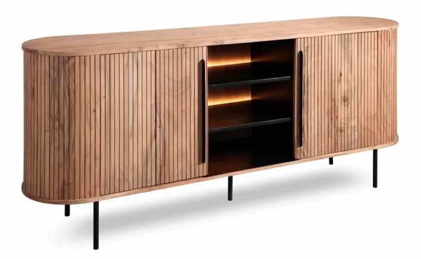 Das Sideboard Bronx 4471 von WOLFMÖBEL zeichnet sich durch sein auffälliges Design im Jalousienlook aus. Punkten kann die aus massivem Holz gefertigte stabile Kommode mit mehreren Türen und praktischen Einlegeböden. Bei dem Sideboard Bronx 4471 gefällt zudem der Mittelbereich mit Glasfront, in dem Sie besondere Kleinode wie beispielsweise schönes Geschirr zur Schau stellen können.
