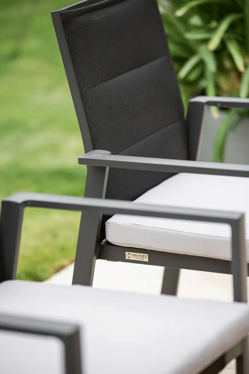 Der Gartenstuhl Nancer aus dem Hause Niehoff Garden zeichnet sich durch sein stilvolles Design aus, das angenehm ins Auge fällt. Er bietet dank der weichen Polsterung einen besonders hohen Sitzkomfort. Zudem ist der Gartenstuhl Nancer des Herstellers Niehoff Garden ideal auf die Anforderungen im Freien vorbereitet.