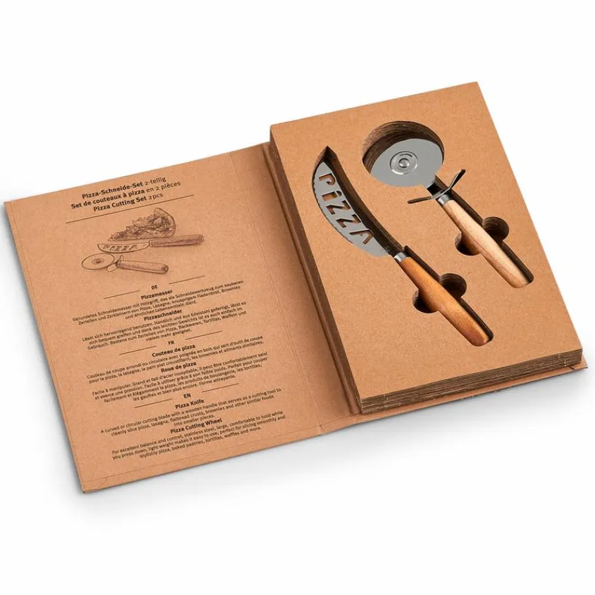Der Pizzaschneider 2tlg. ist ein nützliches Besteck für Gastgeber und alle, die für sich und ihre Lieben Pizza schneiden möchten. Das schicke Küchenset besteht aus einem Pizzamesser und einem Pizzaroller. Dieses Werkzeug leistet immer dann gute Dienste, wenn der große Hunger kommt. Mit dem Pizzaschneider 2tlg. fällt es leicht, Pizzen gerecht zu teilen oder in mundgerechte Stücke zu schneiden.