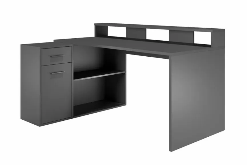 Der Schreibtisch Gamer aus dem Hause trendteam bietet viel praktischen Stauraum. In mehreren Fächern finden Unterlagen ebenso Platz wie Computerzubehör und Schreibutensilien. Darüber hinaus überzeugt der Schreibtisch Gamer von trendteam durch eine edle Optik im modernen Stil und erlaubt mit der unifarbenen Gestaltung viele Kombinationsmöglichkeiten.