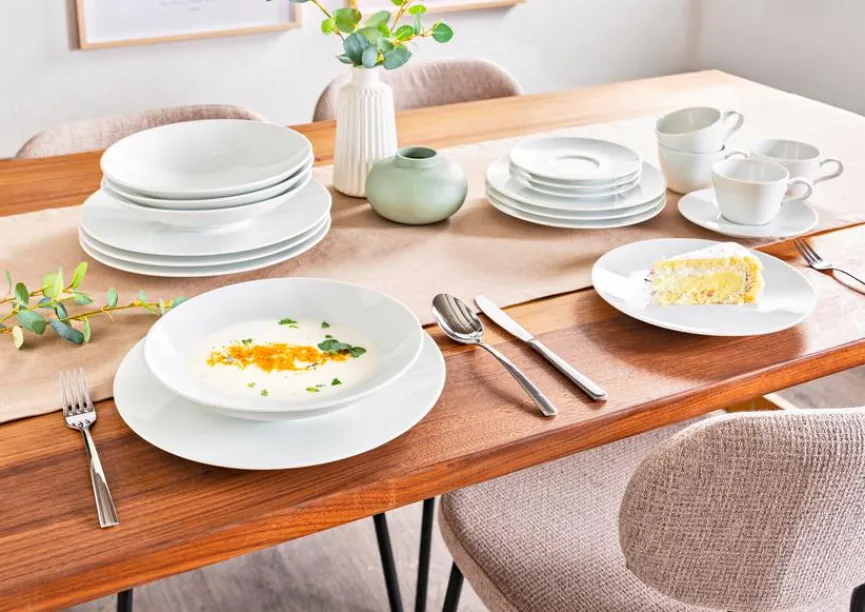 Ob im Alltag oder zu besonderen Anlässen, das Tafelservice Life 8tlg. von Seltmann punktet mit seinem stilvollen, zeitlosen Design, das zu jeder Jahreszeit passt. Für leckere Speisen bildet das schlichte Tafelgeschirr eine tolle Basis, da die Gerichte darauf schön zur Geltung kommen. Darüber hinaus ist das aus Speise- und Suppentellern bestehende Tafelservice Life 8tlg. praktischerweise spülmaschinenfest und mikrowellengeeignet.