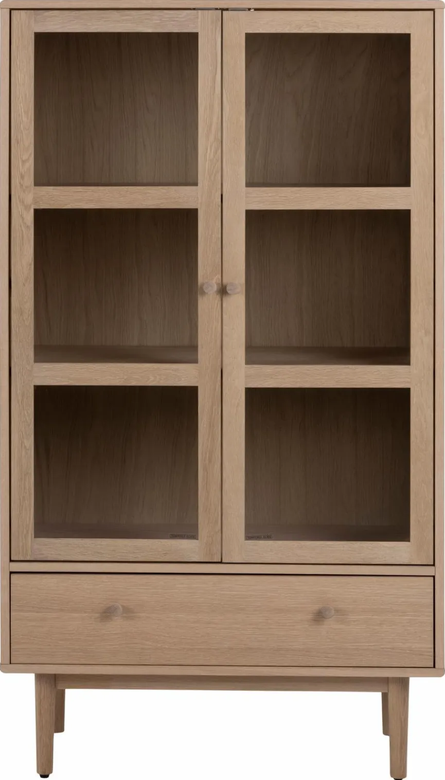 Wenn Sie beispielsweise hübsches Teegeschirr besitzen, das Sie in Ihrem Wohnzimmer ausstellen möchten, dann eignet sich dafür die stilvolle Vitrine Aston. Ihre Türen mit Glaseinsätzen ermöglichen, dass die Tassen und Unterteller perfekt zu sehen sind. Zudem erlauben die beiden Einlegeböden der wunderschönen Glasvitrine, dass Sie ausreichend Platz für das Geschirr haben. In der darunterliegenden Schublade der Vitrine Aston können Sie Tischwäsche verstauen.