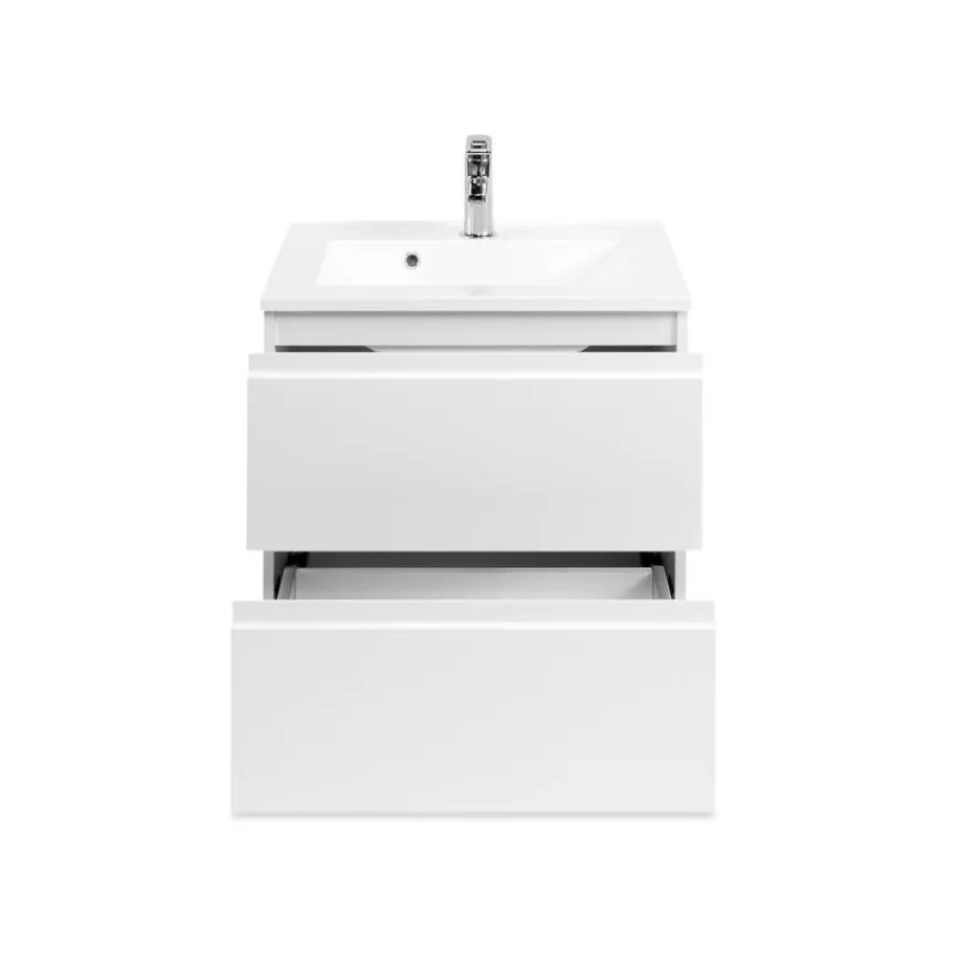 Der Waschtisch Cardiff vereint klassische Formen mit nützlicher Funktionalität. Die rechteckige Grundform des Waschbeckens lässt sich gut in verschiedene Einrichtungsstile integrieren. Zudem können auf den großzügigen Rändern Badutensilien abgestellt werden. Daneben lässt sich in zwei geräumigen Metallauszügen mit integrierter Griffmulde Badbedarf einfach und praktisch verstauen. Der Waschtisch Cardiff ist zudem einfach zu reinigen und besitzt ein integriertes Mineralgussbecken.