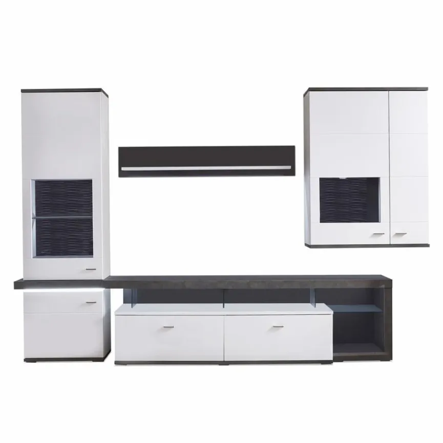 - Wohnwand aus Vitrine, TV-Lowboard, Wandboard und Hängevitrine