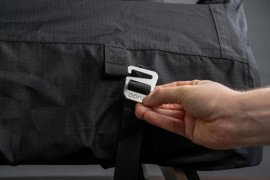 Durch den elastischen Saum hat die Tragetasche eine besonders genaue Passform und dank den verstellbaren Riemen kannst du deinen Pizzaofen einfach und sicher transportieren.