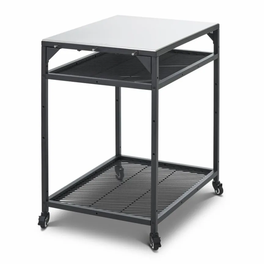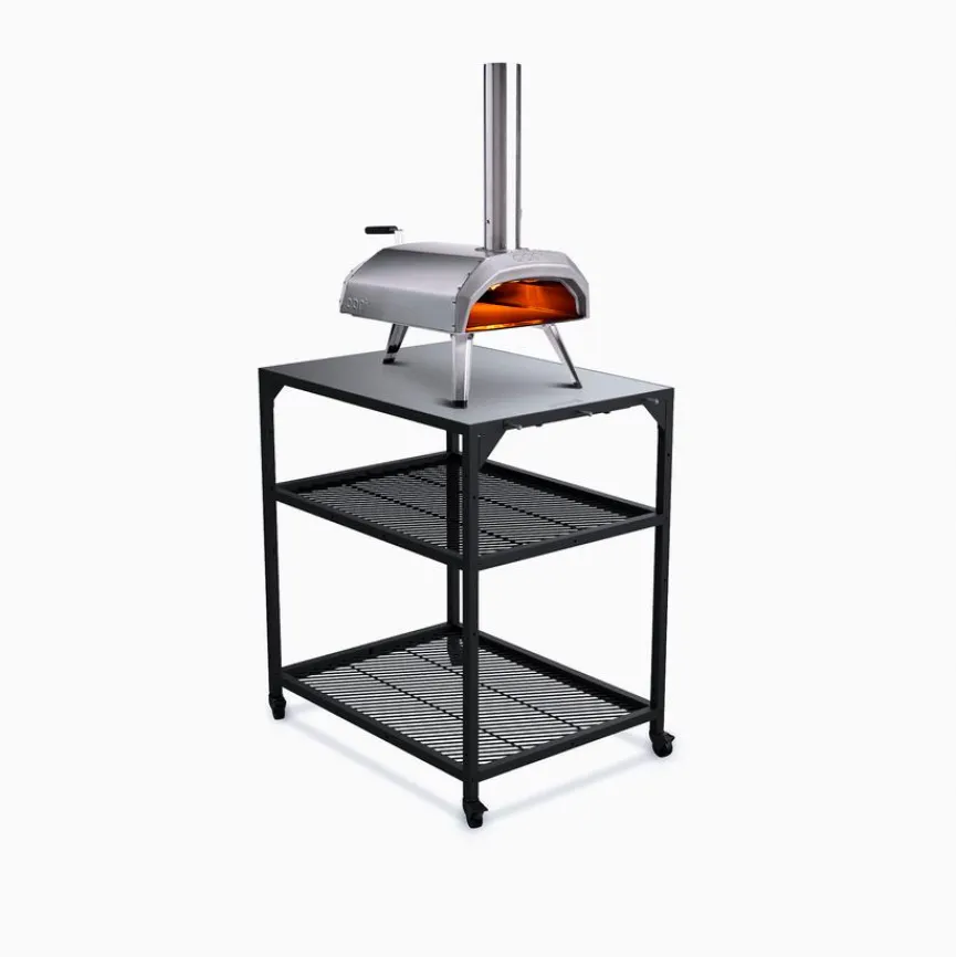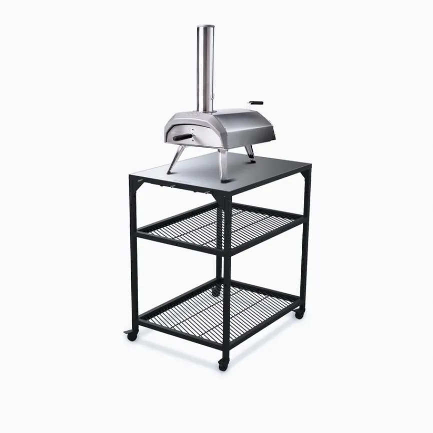 Der durchdacht designte Modultisch Pizzaofen Medium aus dem Hause Ooni ist eine exzellente Ergänzung zu einem Ooni-Pizzaofen. Ausgestattet ist dieser Arbeitstisch mit zwei Einlegeböden, die sich in der Höhe verstellen lassen. Die untere Fläche, mit der der Modultisch Pizzaofen Medium versehen ist, lässt sich zum Beispiel zur Unterbringung von Brennmaterial nutzen.
