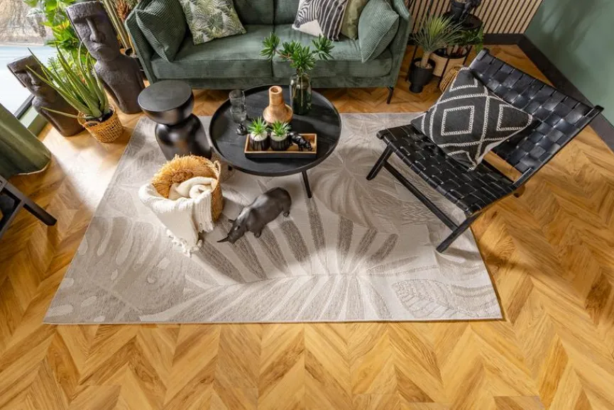 Der attraktive Outdoorteppich Esterni 120×170 cm präsentiert sich als schicker Blickfang. Sein hübsches Muster zaubert ein tropisch inspiriertes Flair. So sorgen Sie mit dem Outdoorteppich Esterni 120×170 cm im Handumdrehen für ein gemütliches Ambiente in trendiger Optik.