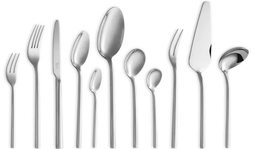 - Je 12 Messer, Gabeln, Löffel, Kuchengabeln, Kaffeelöffel, je 2x Fleischgabeln, Servierlöffel, je 1x Suppen-/Sahnelöffel, Saucenlöffel, Tortenheber, Zuckerlöffel