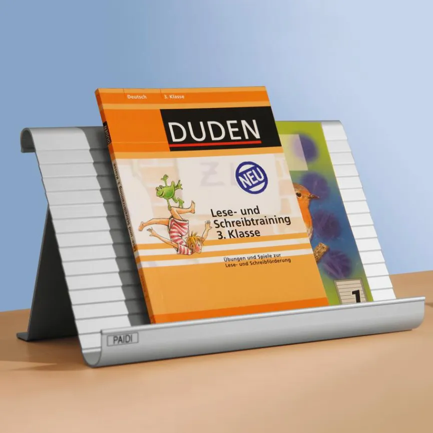 Die Buchstütze PAIDI des Markenherstellers Paidi ist ein praktischer Helfer auf dem Schreibtisch. Bücher und Hefte finden sicheren Halt auf dem stabil stehenden Buchständer von Paidi. Ermüdungserscheinungen beim Lesen wird vorgebeugt, weil eine bequemere Körperhaltung eingenommen werden kann. Die Buchstütze PAIDI ist an den Kanten abgerundet und zu Hause genauso praktisch einzusetzen wie in der Schule oder im Büro.