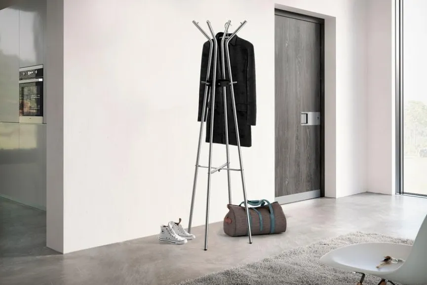 Mit dem Garderobenständer Teros aus dem Hause Zack sorgen Sie für eine moderne Note im Wohnbereich. Zudem trägt der Kleiderständer schnell zur Ordnung in Ihren vier Wänden bei. Sie können den schlichten Garderobenständer Teros natürlich vielseitig kombinieren und viele Wohnstile mit ihm abrunden.
