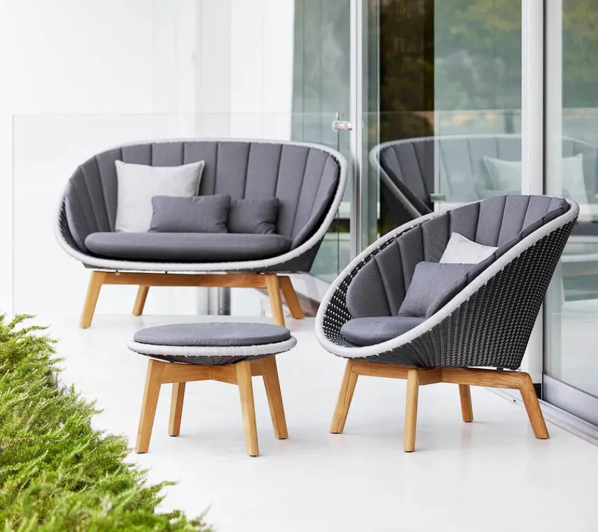 Mit dem Gartensofa Peacock der Marke Cane-line verlagern Sie Ihr Wohnzimmer in den Außenraum! Das gemütliche Loungesofa ist wie geschaffen zum Wohlfühlen und Genießen und bietet zudem den Vorteil eines robusten Outdoor-Möbels. Das Gartensofa Peacock von Cane-line mit seinem geschwungenen Design schafft eine einladende Atmosphäre in Ihrem Garten.