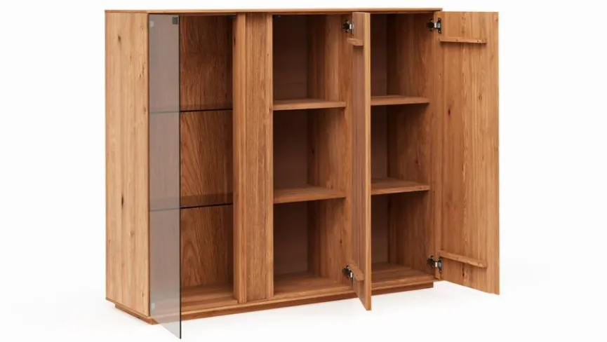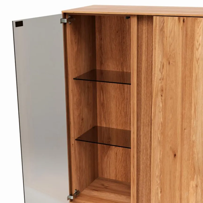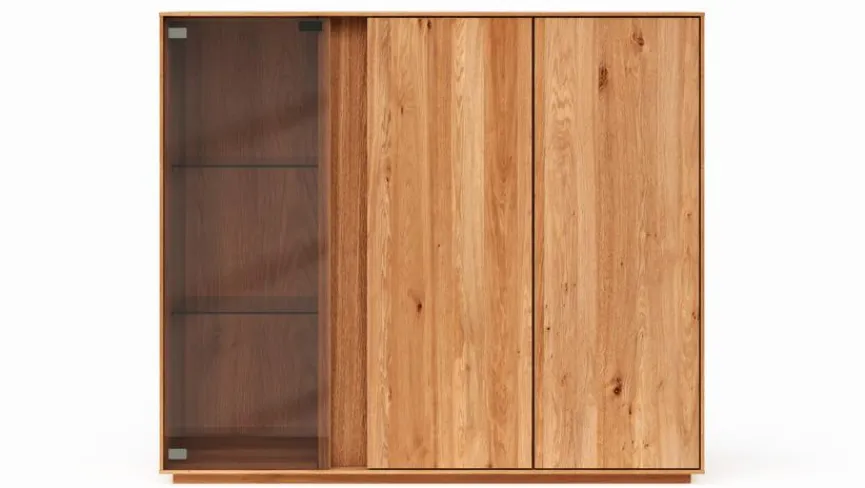 Wenn Sie Liebhaber von minimalistischem Design sind, so eignet sich das Highboard Scottsdale von AM Design ideal für Sie. Während die Glastür es Ihnen ermöglicht, Ihre Lieblingsstücke zur Schau zu stellen, können Sie andere Gegenstände hinter den Holztüren der Kommode unterbringen. So ist das Highboard Scottsdale ein funktionales Element in Ihrem Raum, das gleichzeitig dekorativ wirkt.