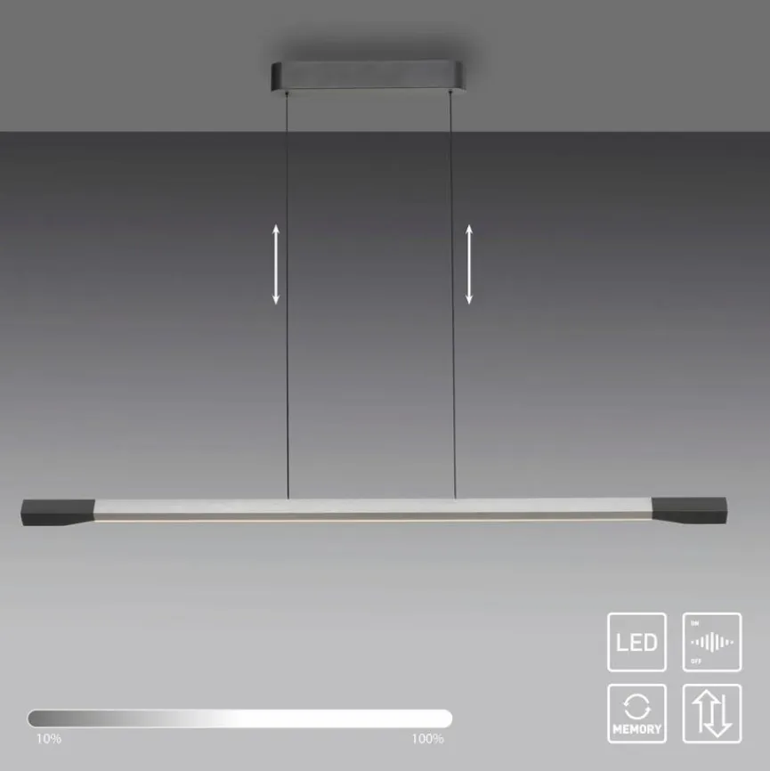 Die LED-Pendelleuchte Hoop von Paul Neuhaus passt durch ihr schlichtes, zurückgenommenes Design in jeden Raum. Für gleichmäßiges Licht über die gesamte Breite sorgt die Lichtleiste der LED-Pendellampe. Die hochwertige LED-Pendelleuchte Hoop macht nicht nur über einem Esstisch eine sehr gute Figur, sondern passt auch hervorragend über eine Küchentheke oder Kochinsel.