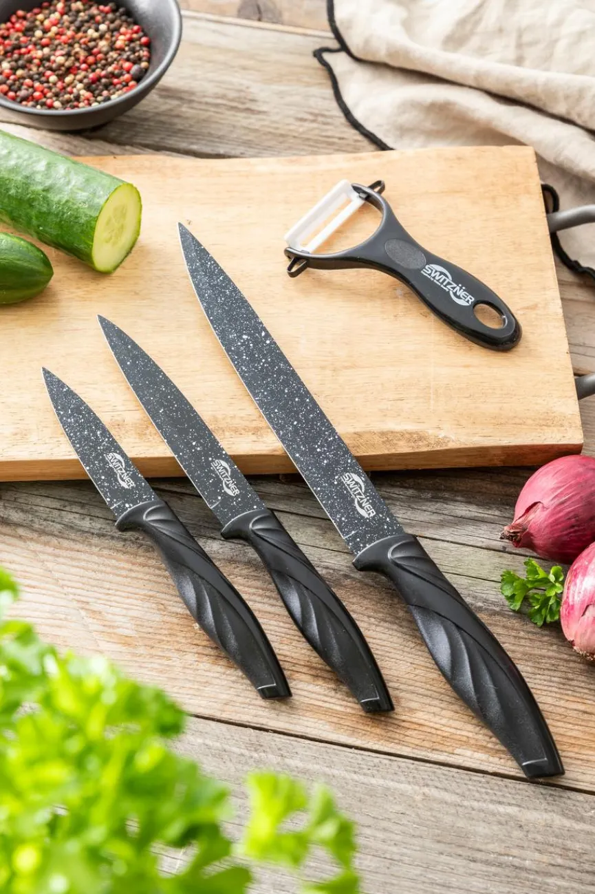 Mit dem Messerset 4tlg. sind Sie für fast alle Lebenslagen gewappnet, daher sollte es als Grundausstattung in keinem Haushalt fehlen. Bestehend aus drei scharfen Schneidemessern unterschiedlicher Größe sowie einem Sparschäler lässt es keine Wünsche offen und eignet sich damit gleichermaßen gut zum Bearbeiten von Fleisch, Fisch oder Gemüse. Dank der robusten Griffe bietet Ihnen das Messerset 4tlg. eine gute und sichere Handhabung der Utensilien.
