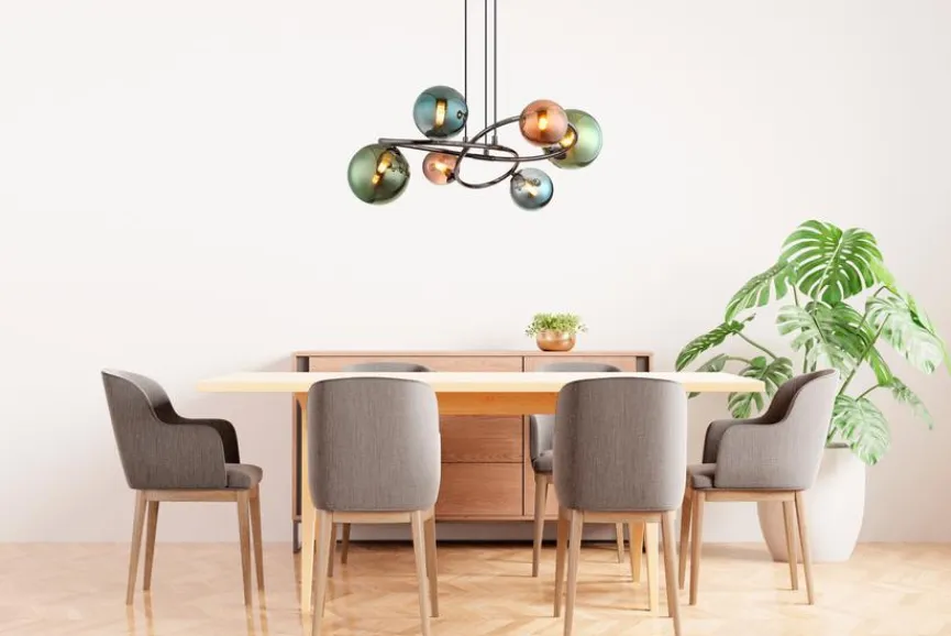 Optisch besticht die Pendelleuchte Riha von Globo im industriellen Design, das sich mit unterschiedlichen Einrichtungsstilen kombinieren lässt. Jeder Raum wird mit dieser Pendellampe exzellent in Szene gesetzt. Die ungewöhnliche Anordnung der einzelnen Leuchtmittel macht die Pendelleuchte Riha zum echten Hingucker. Damit sorgen Sie für ein besonderes Ambiente und bringen Ihre Gäste zum Strahlen.