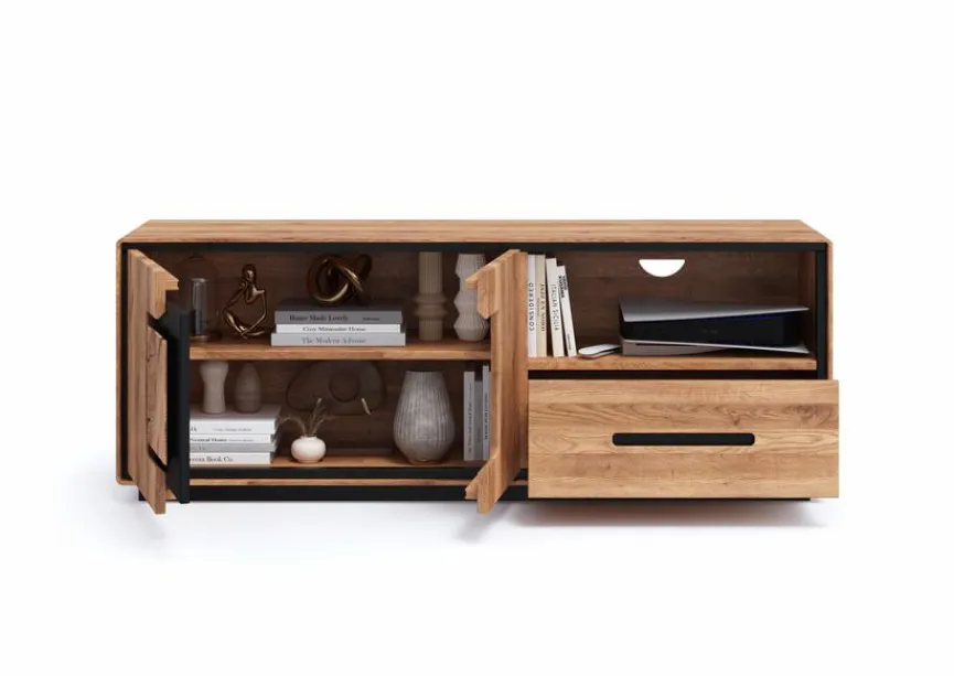 Das TV-Element Toronto von G+K vereint sowohl klassisches als auch modernes Design mit praktischer Funktionalität. Mit seiner ansprechenden Optik und den klaren Linien fügt es sich nahtlos in alle Wohnzimmereinrichtungen ein. Dank der großzügigen Ablagefläche und dem zusätzlichen Stauraum bietet das TV-Element Toronto ausreichend Platz für Ihre Mediengeräte und Zubehör, während die hochwertige Verarbeitung für Langlebigkeit und Stabilität sorgt.