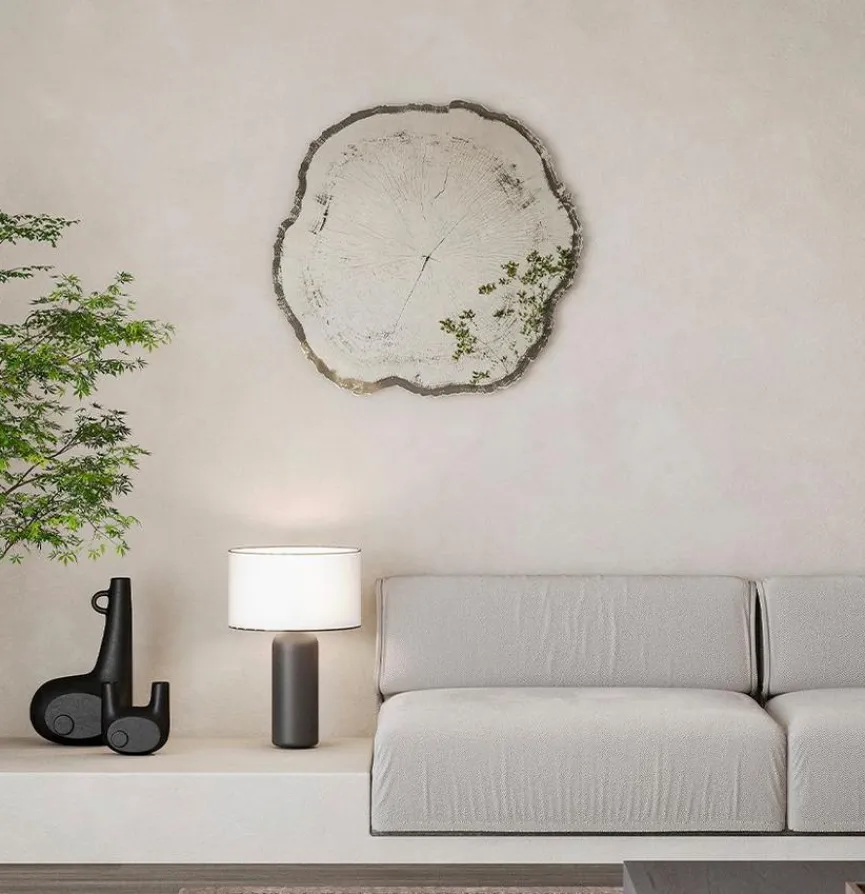 Der Wandspiegel Arbo aus dem Hause DEKNUDT MIRRORS vereint robuste und feine Noten zu einem Baumscheiben-Look der Extraklasse. Sie erhalten einen hochwertigen Hängespiegel, der warme, einladende und naturnahe Akzente im Zimmer setzt. Durch die Jahresringe wirkt der Wandspiegel Arbo sowohl ausdrucksstark als auch besonders filigran.
