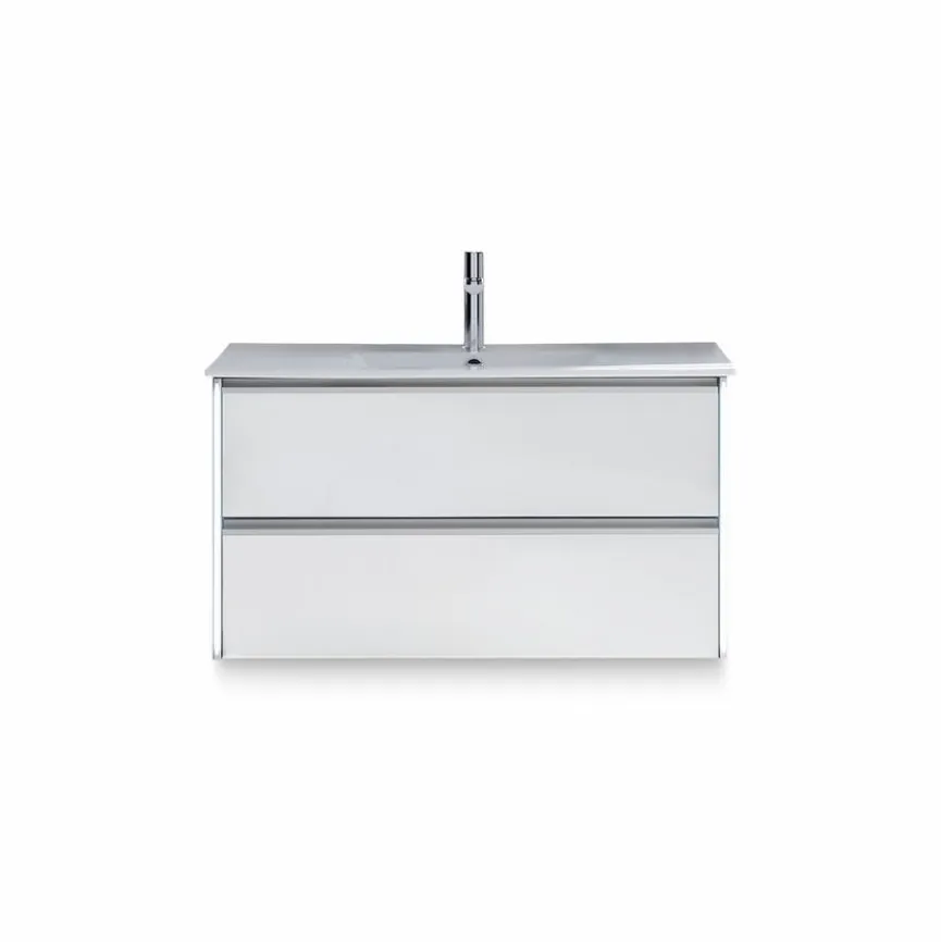 - Inkl. Keramikwaschtisch in Weiß Glanz mit Armaturbohrung und integr. Überlauf
