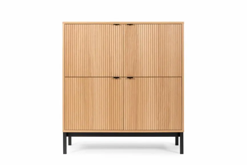 Das Highboard Sami von Portobello wirkt zeitlos elegant und passt zum Beispiel gut in ein Wohnzimmer im modernen, sachlichen Stil. Türfronten in Lamellenoptik und kontrastierende Elemente machen den besonderen Reiz dieses Möbels aus. Als Ergänzung zum Highboard Sami bieten sich diverse weitere Typen aus diesem wunderbaren Programm an.