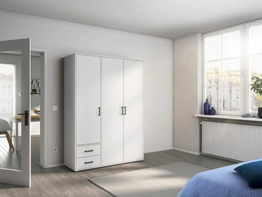 Der Drehtürenschrank 3-trg. Voyager 140×194 cm von rauch BLUE besticht durch sein modernes, helles Design auf ganzer Linie. Zudem bietet das Möbelstück viel Platz für die ordentliche Verwahrung von Kleidungsstücken, Wohntextilien und anderen Utensilien. Zu diesem Zweck hält der Drehtürenschrank 3-trg. Voyager 140×194 cm reichlich Stauraum in zwei Schubladen und hinter seinen beiden Türen bereit.