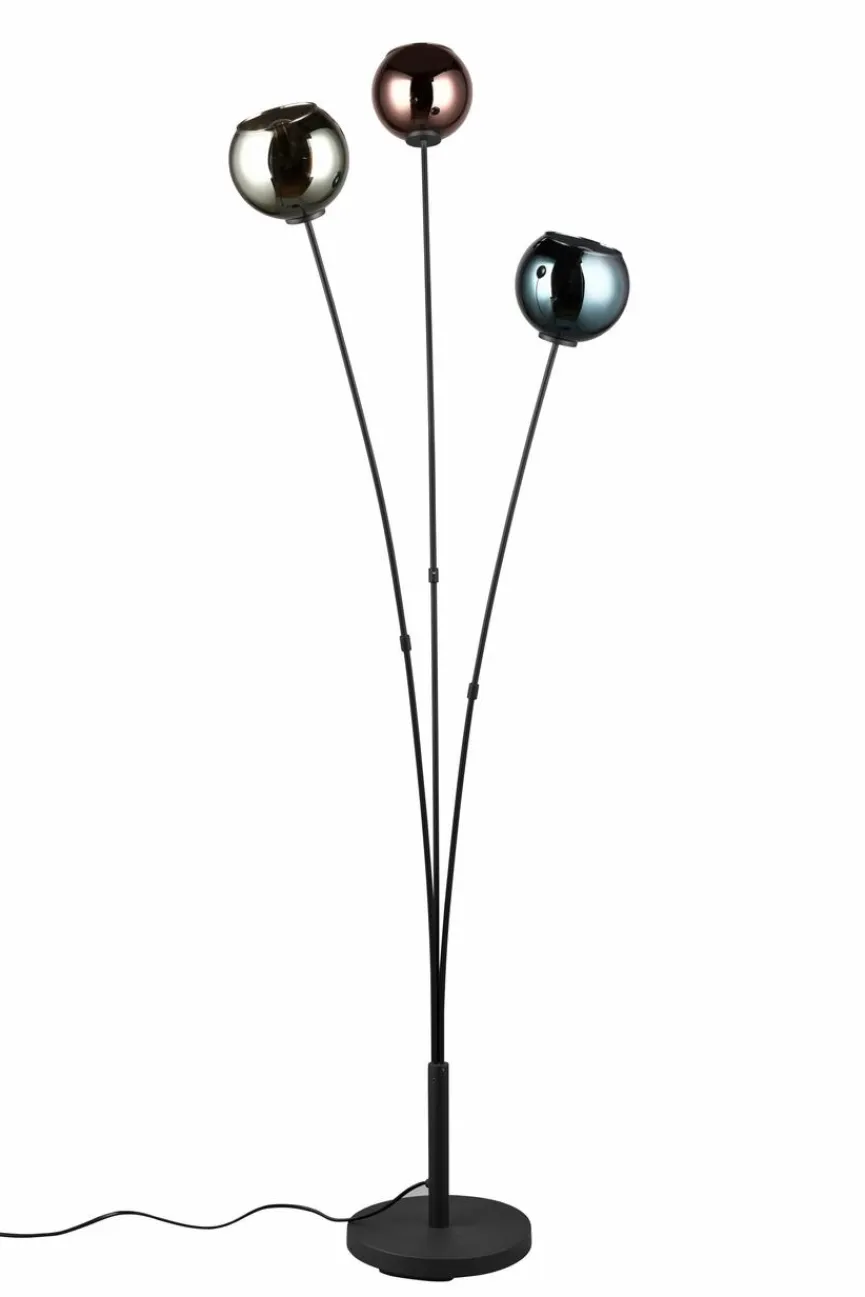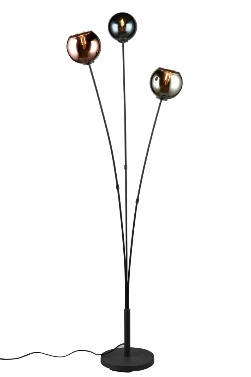 Gleich drei kugelförmige Gehäuse verleihen der Stehlampe Sheldon von Reality Leuchten einen ebenso kreativen wie geschmackvollen Look. Auch die kunstvoll geschwungenen, grazilen Ständer unterstreichen die ansprechende Optik dieser Stehleuchte. Natürlich sorgt die Stehlampe Sheldon zudem spielend leicht für stimmungsvolle Lichtverhältnisse und auch in puncto Qualität kann sie dank exzellenter Verarbeitung auf ganzer Linie überzeugen.
