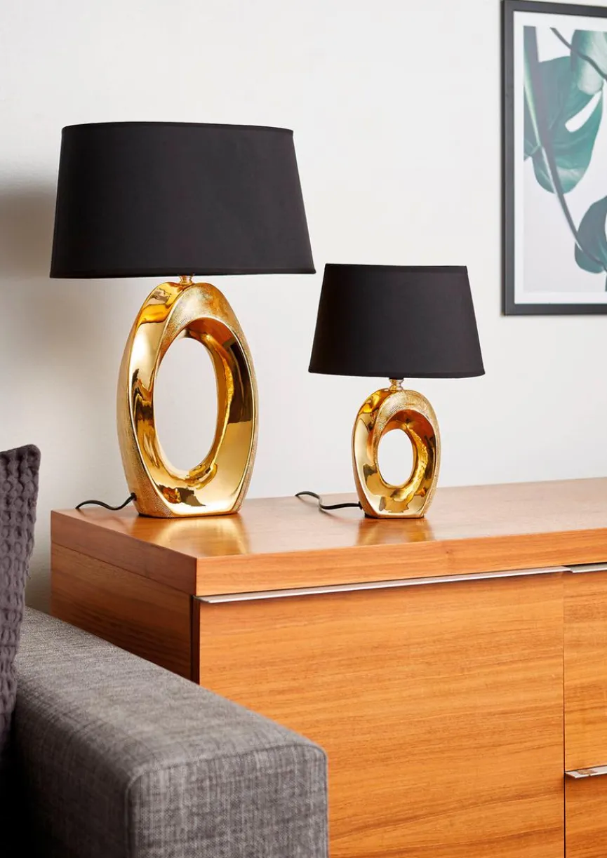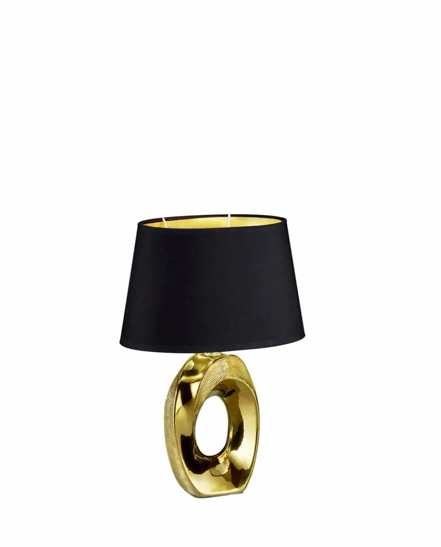 Durch den goldfarbigen Keramik-Sockel wertet die Tischleuchte Taba der Marke Reality Leuchten mit Sicherheit jedes Interieur optisch auf. Der integrierte Schirm dieser Tischlampe verhindert zudem Blendung und sorgt so für eine angenehme Lichtatmosphäre. Über einen praktischen Schnurschalter kann die einflammige Tischleuchte Taba von Reality Leuchten leicht an- und ausgeschaltet werden.