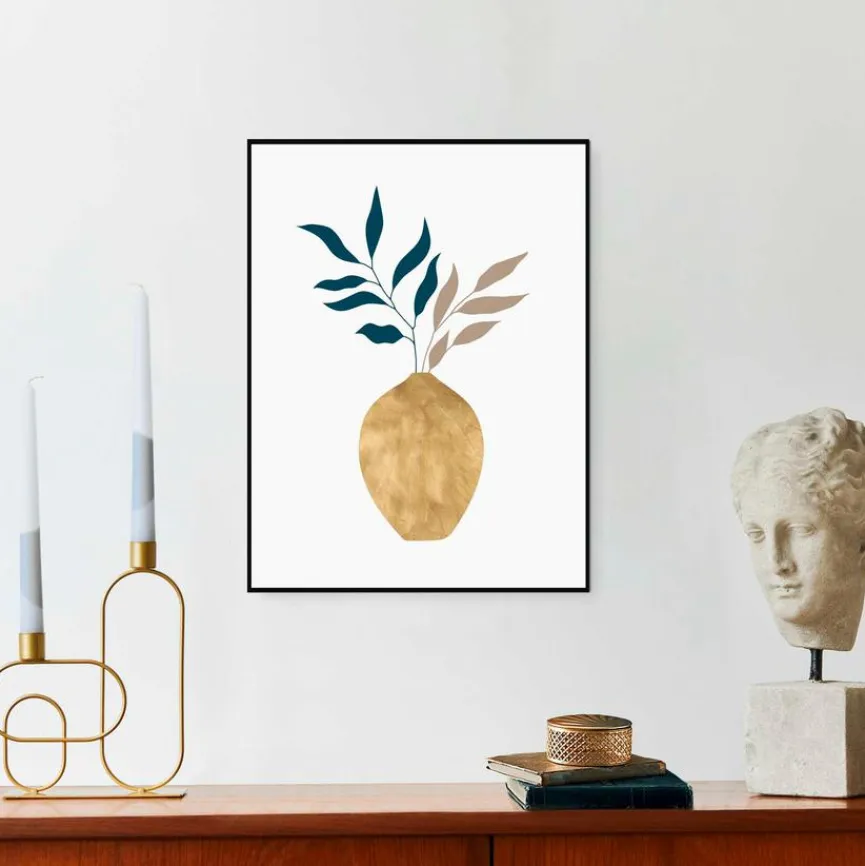 Mit dem Wandbild 30×40 cm Golden Vase von Reinders setzen Sie einen kreativen Akzent in Ihrem Zuhause. Dieses edle Deko Bild zeigt eine schimmernde Vase, die mit eleganten Blättern bestückt ist. Egal, ob im Schlafraum oder über der Couch, das Wandbild 30×40 cm Golden Vase verleiht Ihrem Lieblingsplatz einen künstlerischen Touch.