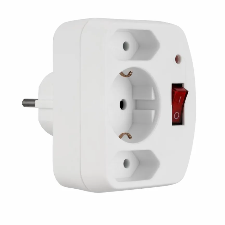 Der Steckdosenadapter 2+1 von REV ermöglicht Ihnen das gleichzeitige, platzsparende Anschließen von drei Geräten. Sie können diese dank des beleuchteten Kontrollschalters ganz bequem gleichzeitig ein- bzw. ausschalten. Da der Steckdosenadapter 2+1 schlicht designt wurde, fügt er sich nicht zuletzt problemlos ins Arrangement.