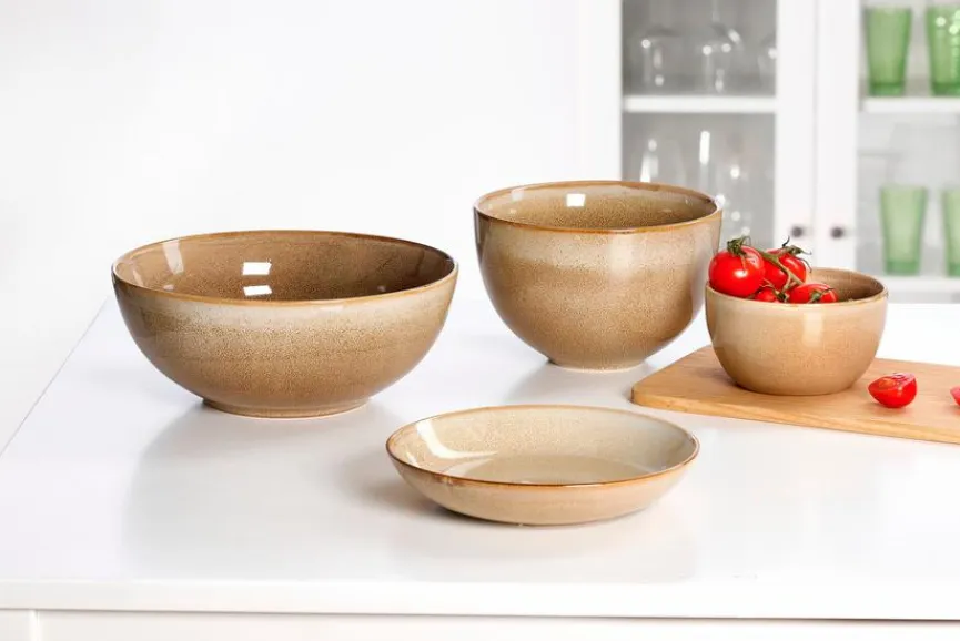 Farbe: BraunMaterial: SteinzeugGröße: Durchmesser: 13,50 cm, Höhe: 7,50 cmVerpackungseinheit von 6 Stück