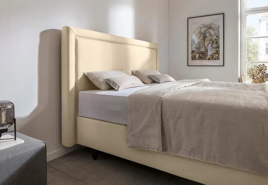 - Gestell aus Spanplatte mit Bezug in Stoff beige