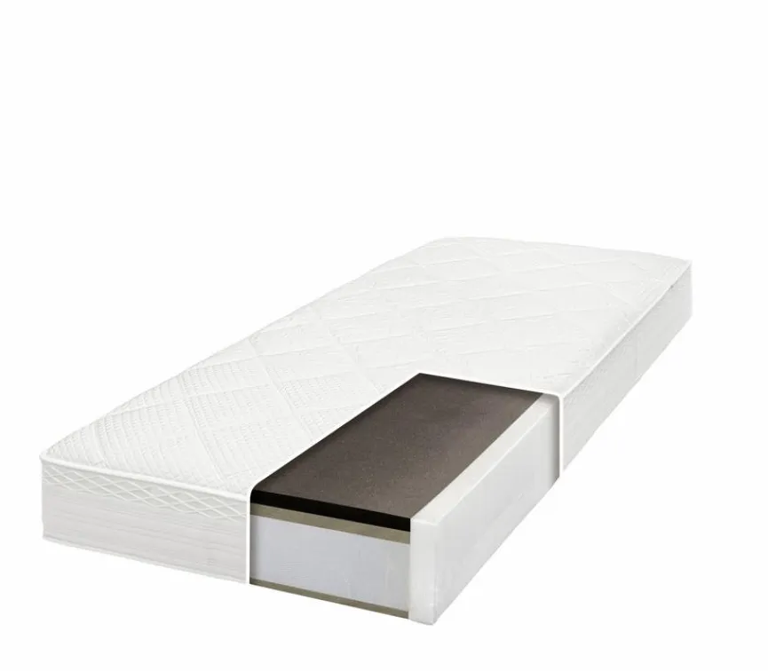 - Obenliegender AQUAPUR®-Schaum in Sandwichbauweise mit RG 50 mit Wollfilz-Federkernabdeckung, 3-Zonen-Micro-Taschenfederkern mit 836 Federn, darunterliegender 3-Zonen-Bonell-Federkern mit 207 Federn und innenbefestigtem Taschenfederkern mit 104 Federn