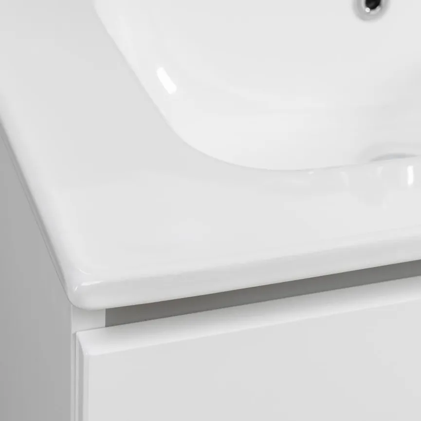 - Keramik-Waschbecken in Weiß glänzend, mit Hahnloch- und Überlaufbohrung