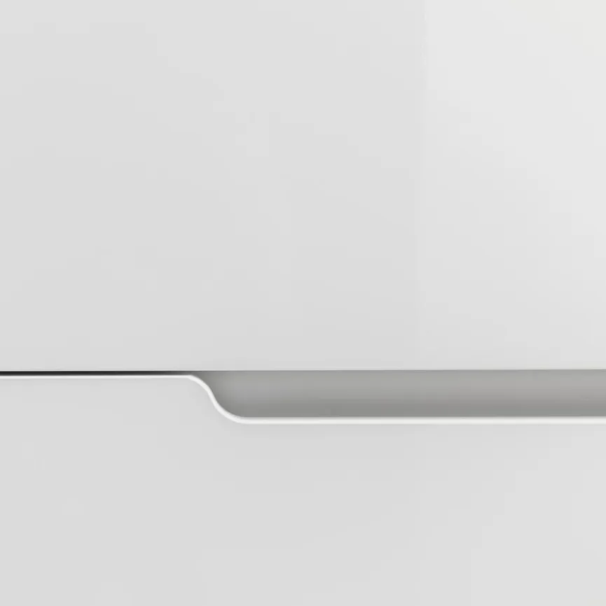 - Korpus und Front aus Holzwerkstoff (MDF) mit hochwertiger Dekorfolie in Weß glänzend