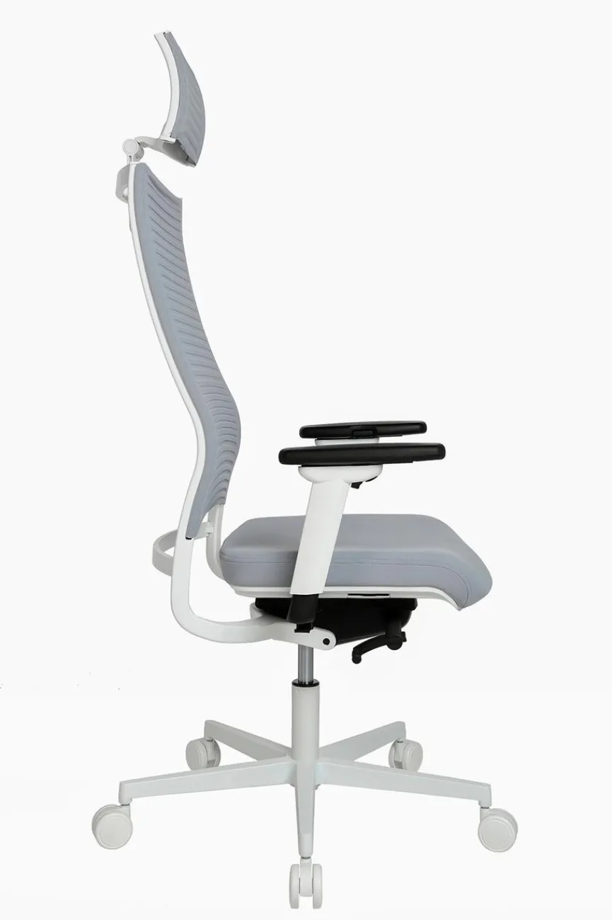 - Atmungsaktiver Netzbezug aus Stoff in Grau, Fußkreuz/Gestell für die Rückenlehne aus pulverbeschichtetem Aluminium in weiß