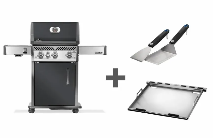- Set besteht aus Grill RP425SIBPCH-2-DE in Charcoal mit Sizzle Zone Seitenbrenner, inkl. Full Size Edelstahl Plancha 56093 und 2-tlg. Plancha Tool-Set 70030