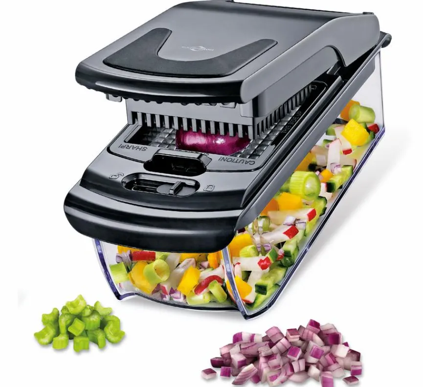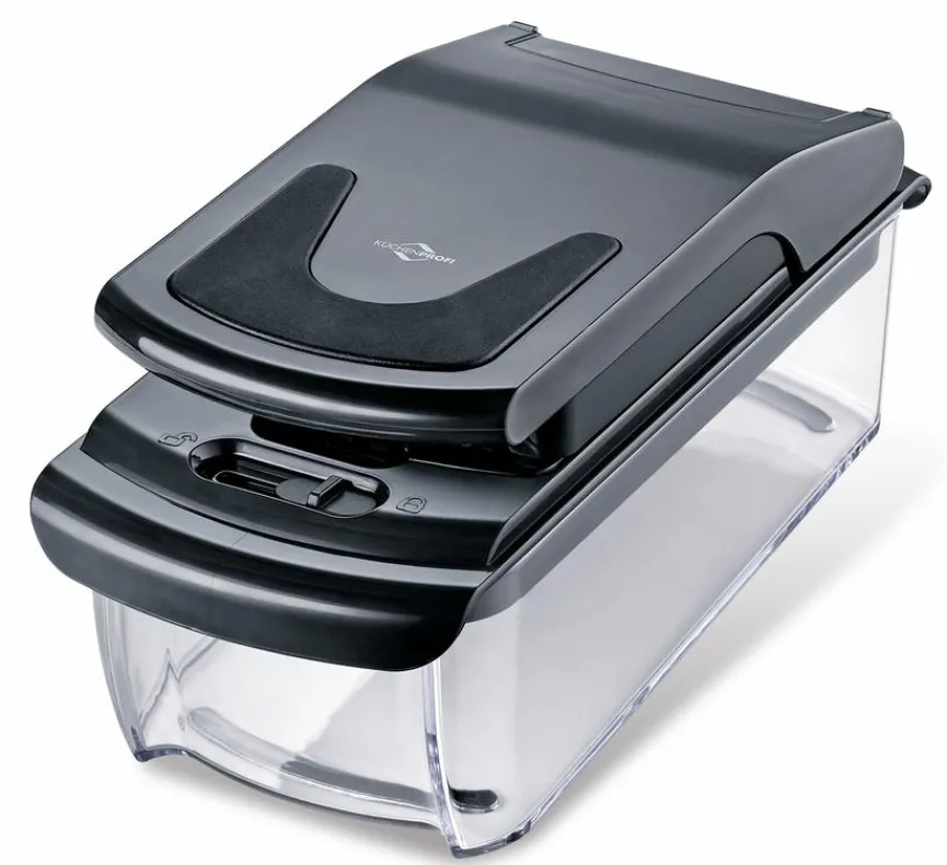 Der praktische Gemüsewürfler Compacto von Küchenprofi leistet tolle Dienste, wenn es um das Zerkleinern von Gemüse und auch Obst geht. Ganz gleich, ob Sie Zwiebeln, Gurken oder Karotten in mundgerechte Stücke zerteilen möchten, der Gemüseschneider lässt Ihnen die Wahl, ob es fein oder grob sein soll. Dank des Frischhaltedeckels lassen sich die Zutaten im Gemüsewürfler Compacto aufbewahren.