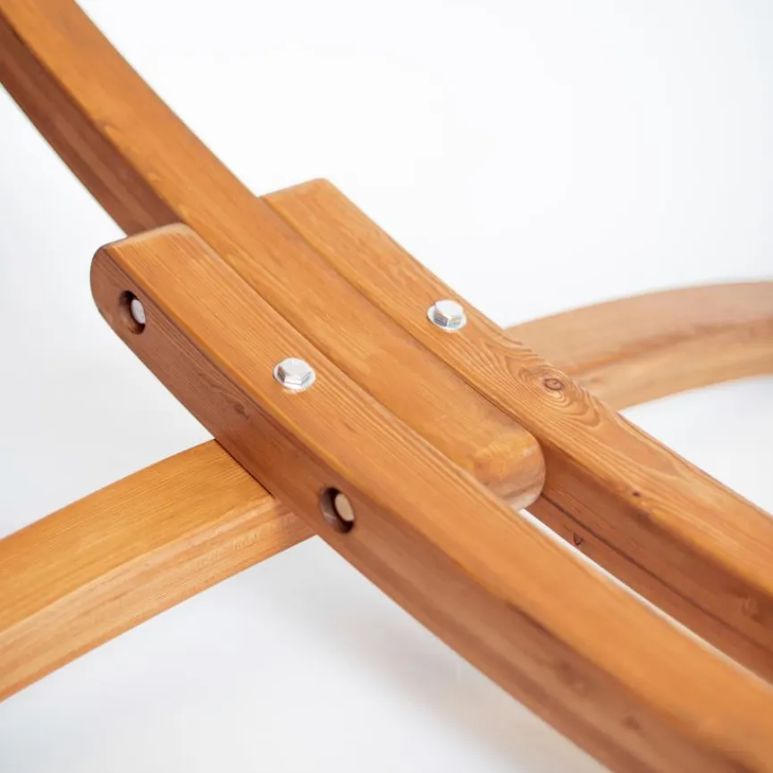 Verwirklichen Sie mit dem Hängemattengestell Maera Single von Siesta Ihren Traum von einer Hängematte in den eigenen vier Räumen. Der Hängemattenständer in schlichtem, leichtem Design und schöner Holzoptik harmoniert perfekt mit einem gemütlichen Liegetuch. Bringen Sie mit dem Hängemattengestell Maera Single die Ferien in Ihren Alltag zurück.
