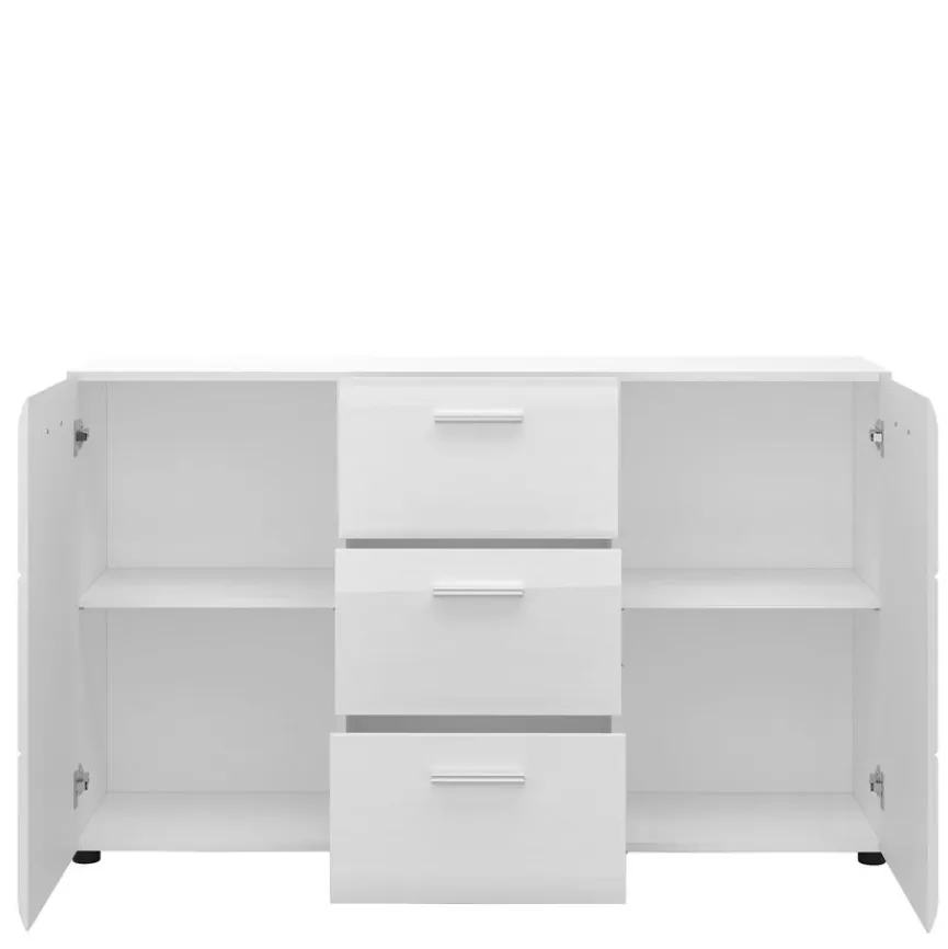 Die geräumig gestaltete Kommode Merano vermittelt moderne Eleganz ohne Kompromisse. Ein klar gezeichnetes Korpusdesign im minimalistischen Stil und schlanke Griffelemente bestimmen hier den zeitgemäßen Look. Ergänzen Sie die Kommode Merano mit weiteren Typen aus diesem Möbelprogramm oder mit anderem Interieur, das puristischen Charme verkörpert!