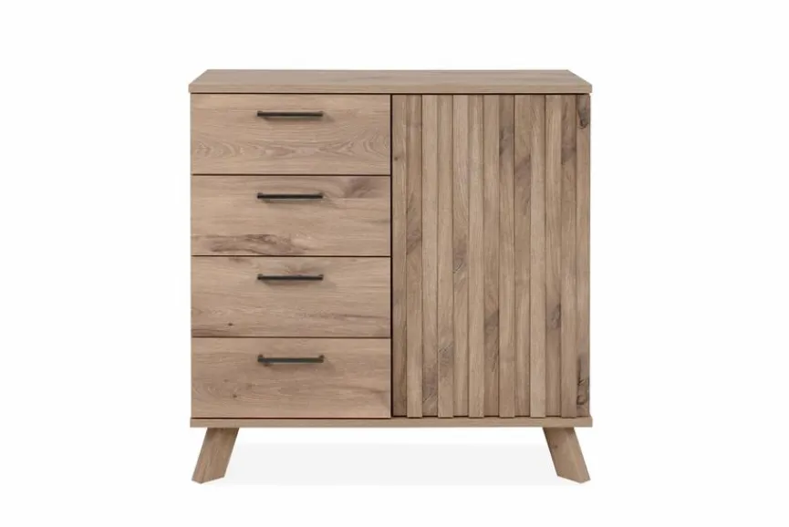 Wer außergewöhnliches Design liebt, wird mit der Kommode Wellington garantiert fündig. Sie besticht durch ihre warme Holzoptik, die Ihrem Wohnzimmer eine gemütliche Note verleiht. Zu einem echten Blickfang macht sie das aparte Reliefdesign der Seitentür. Darüber hinaus bietet die Kommode Wellington Stauraum für viele Dinge des Alltags und sorgt so immer für Ordnung.
